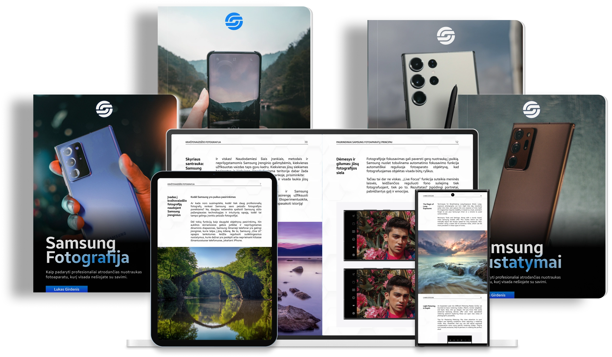 Taip, keliose savo knygose, tarp jų Samsung nuotraukų apdorojimas ir mobili fotografija su AI, aptariame nuotraukų apdorojimo ir redagavimo metodus. Pateikiame išsamias instrukcijas, kaip redaguoti nuotraukas Samsung įrenginiuose naudojant įvairias programas ir įrankius.